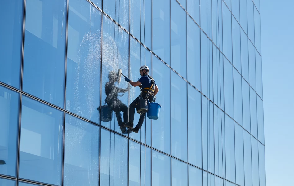 Bekerja di ketinggian membutuhkan nyali dan sertifikasi. Tim Rope Access kami dilatih khusus untuk menangani Facade Cleaning (pembersihan kaca luar) dan Weatherproofing untuk mencegah kebocoran struktural pada gedung bertingkat Anda.
