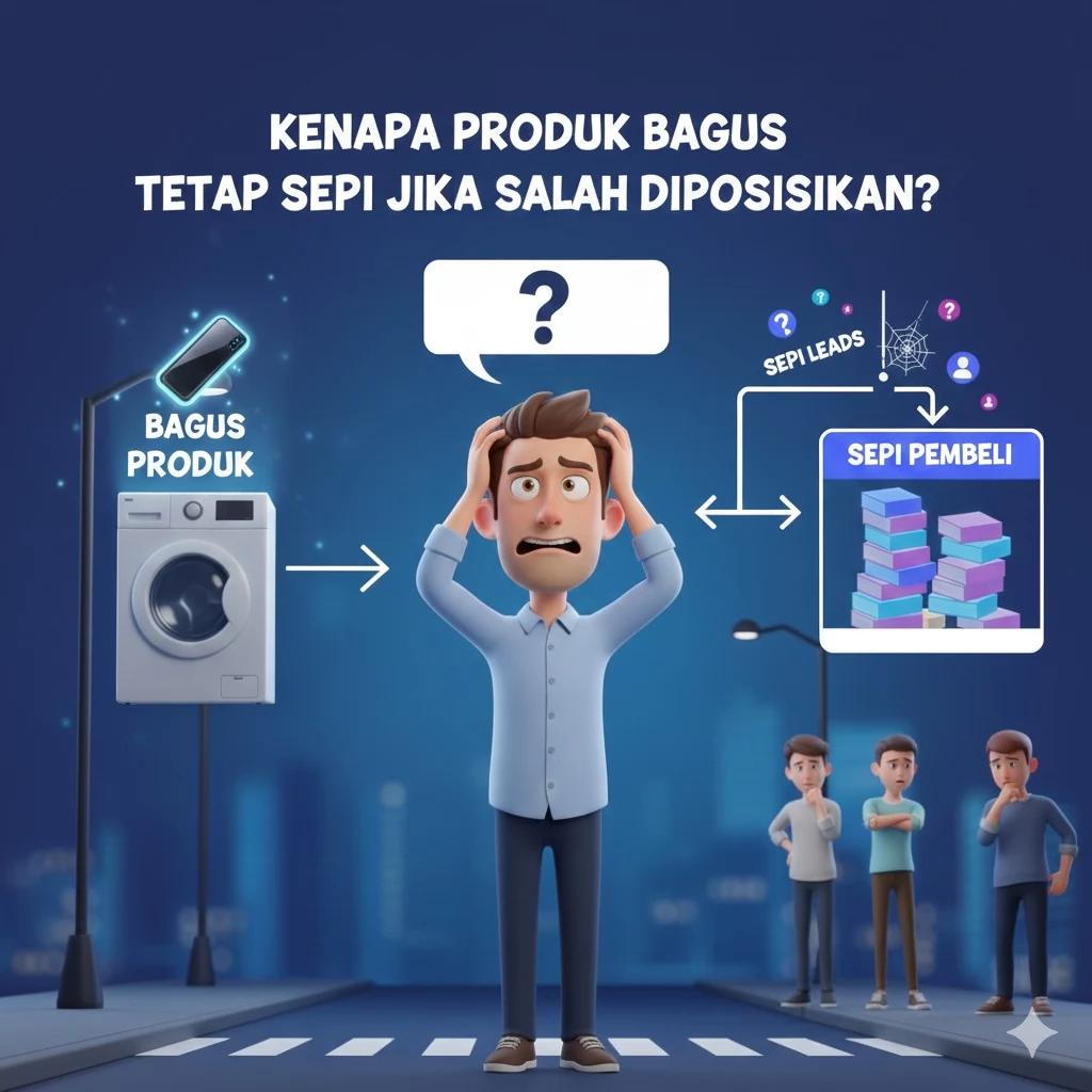 Tapi anehnya, hasilnya tetap sama sepi leads, sepi respon, sepi penjualan. Masalahnya sering kali bukan pada kualitas produk, melainkan cara produk itu diposisikan di kepala audiens.